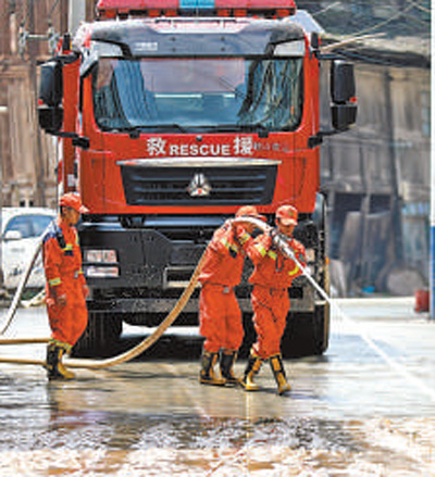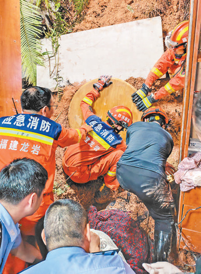 ??6月17日,消防人員在福建省龍巖市武平縣象洞鎮開展救援。周楊東攝(新華社發)