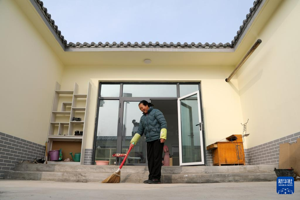 12月11日,在積石山縣劉集鄉(xiāng)團結(jié)村集中安置點,村民姬芳芳打掃自家小院。新華社記者 馬莎 攝