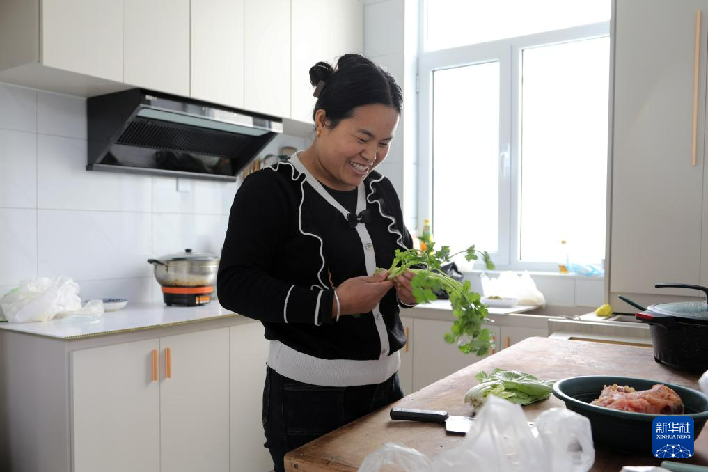 12月11日,在積石山縣劉集鄉(xiāng)團結(jié)村集中安置點,村民龔順蓮在廚房做飯。新華社記者 馬莎 攝