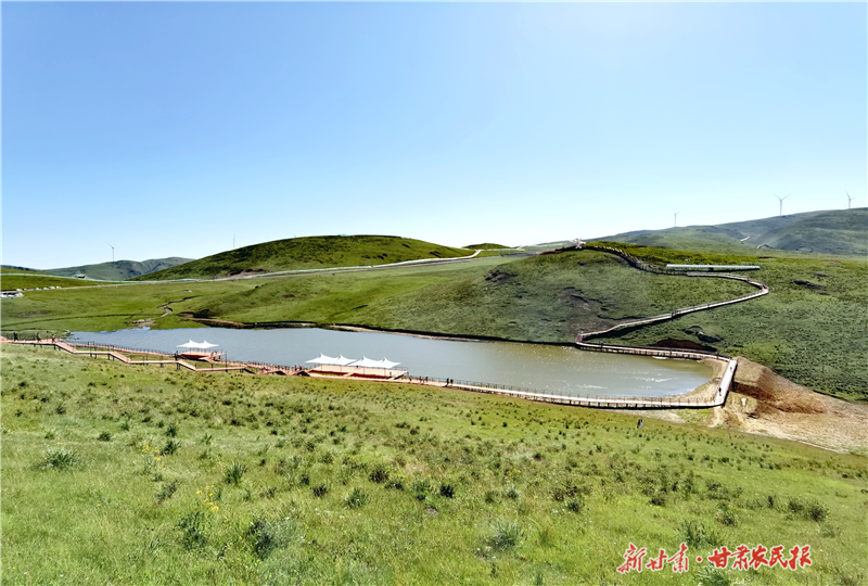 從水保公園盤環而上,新柏油路在綠毯上織出墨色紋路。路面泛著潤光,像被晨霧反復擦拭過,車輪碾過的沙沙聲剛起,就被穿堂風卷著送向遠方。窗景是流動的默片:羊群埋頭啃食帶露的草,尾巴甩得漫不經心,蹄尖驚起的螞蚱蹦跳著掠過鏡頭;牛群臥在坡上反芻,銅鈴偶爾叮咚一聲,給草原的呼吸打個節拍。轉過最后一道彎時,天鵝湖突然撞進視野,像塊被草甸捧著的藍寶石,逼得人下意識屏住呼吸。