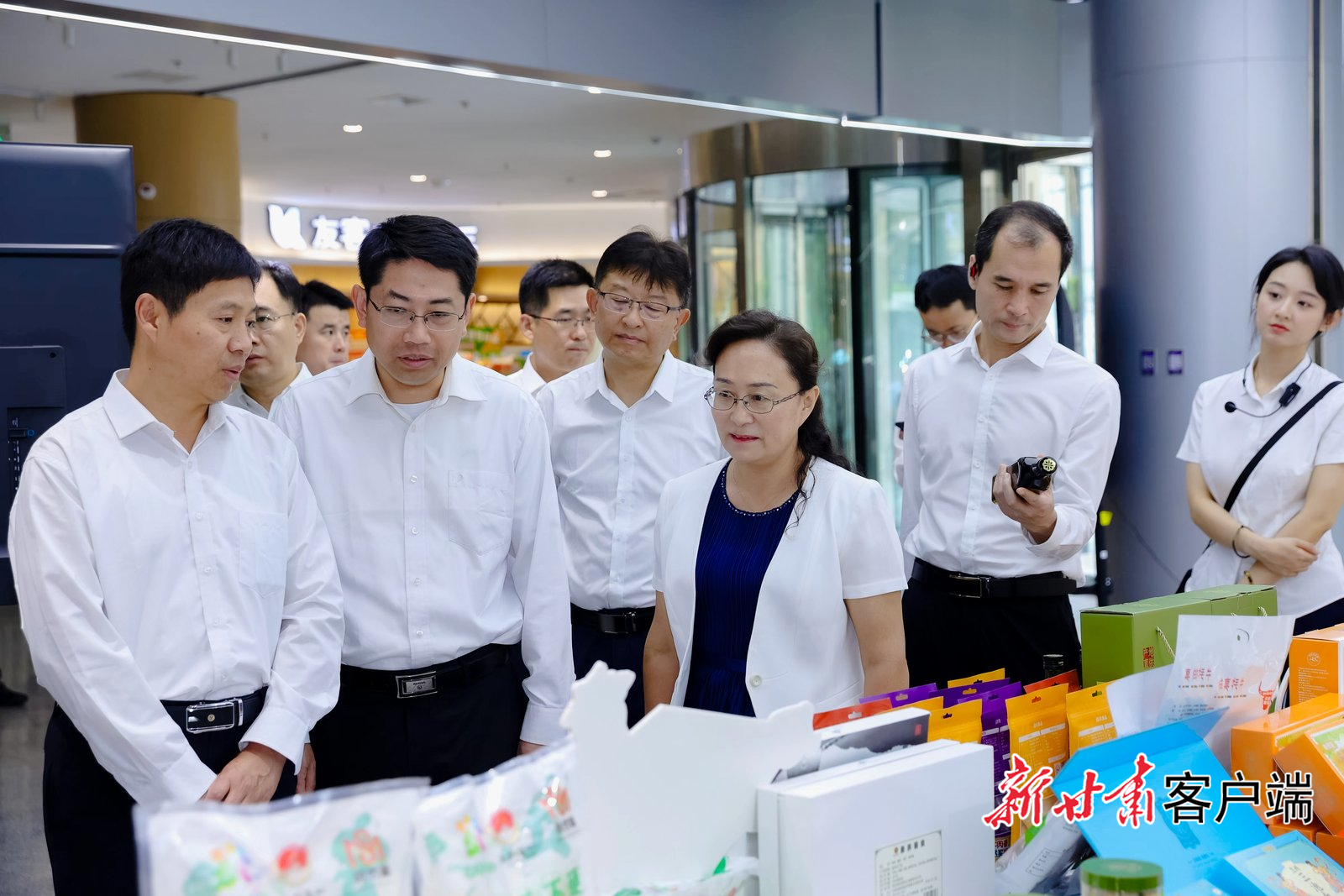 與會(huì)嘉賓參觀青島國(guó)際航運(yùn)中心“甘味”選品中心展區(qū)。