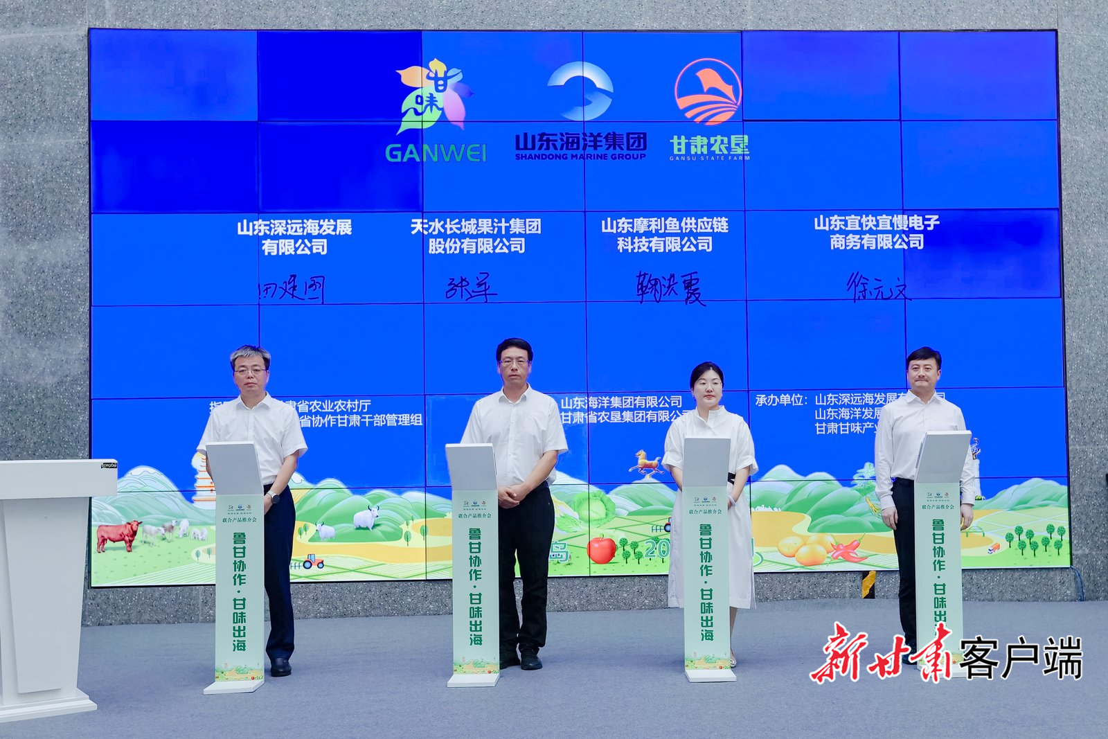 新甘肅客戶端蘭州訊(新甘肅·甘肅日?qǐng)?bào)記者 馬國(guó)順)8月6日,由甘肅省農(nóng)業(yè)農(nóng)村廳、山東省協(xié)作甘肅干部管理組指導(dǎo),山東海洋集團(tuán)與甘肅農(nóng)墾集團(tuán)聯(lián)合主辦的“魯甘協(xié)作·甘味出海”產(chǎn)品推介會(huì)在青島國(guó)際航運(yùn)中心舉行。山東深遠(yuǎn)海發(fā)展有限公司、山東海洋發(fā)展有限公司、甘肅甘味產(chǎn)業(yè)發(fā)展有限公司、天水長(zhǎng)城果汁等多家企業(yè)舉行簽約儀式,達(dá)成戰(zhàn)略合作。