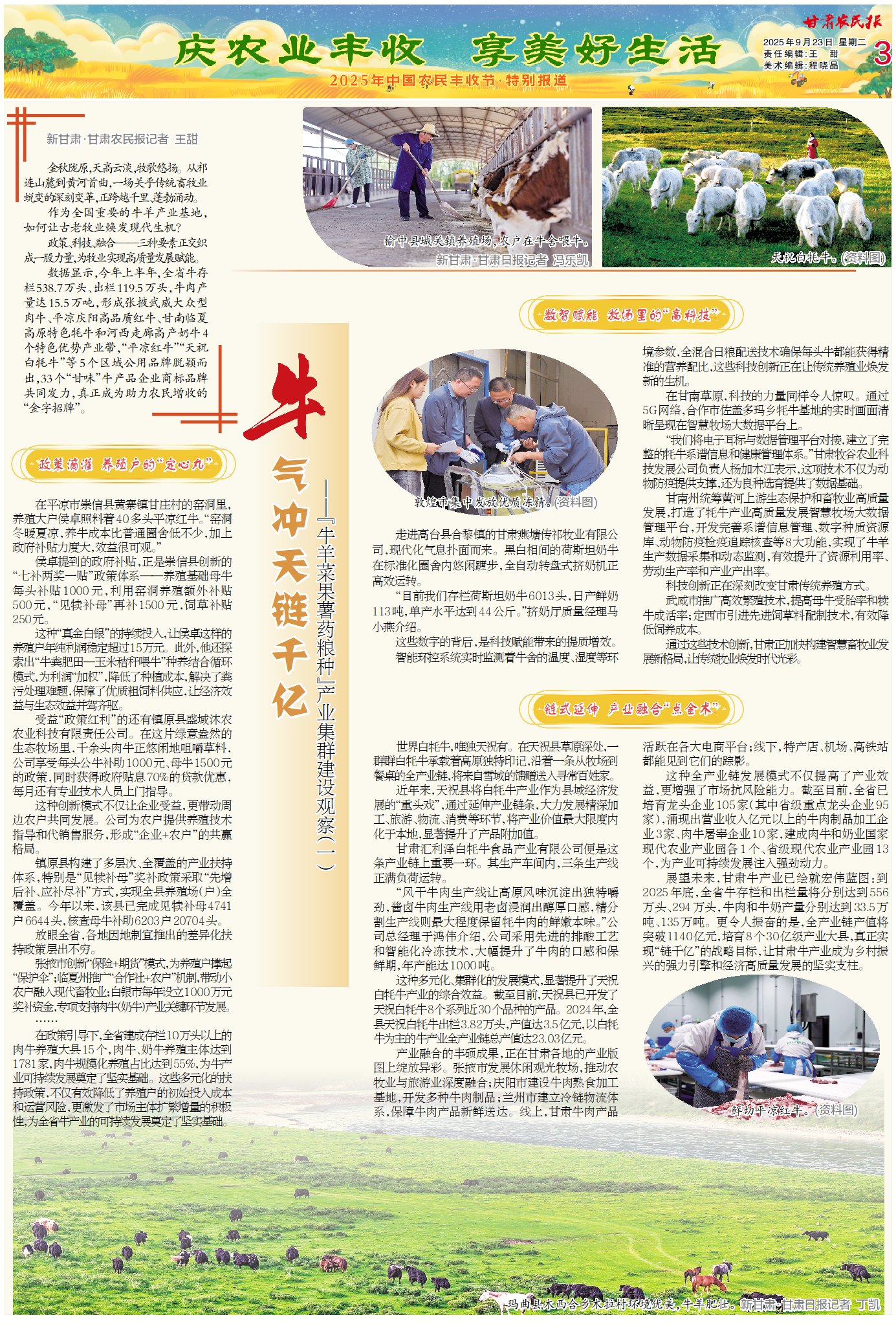 金秋隴原,天高云淡,牧歌悠揚。從祁連山麓到黃河首曲,一場關乎傳統畜牧業蛻變的深刻變革,正跨越千里、蓬勃涌動。