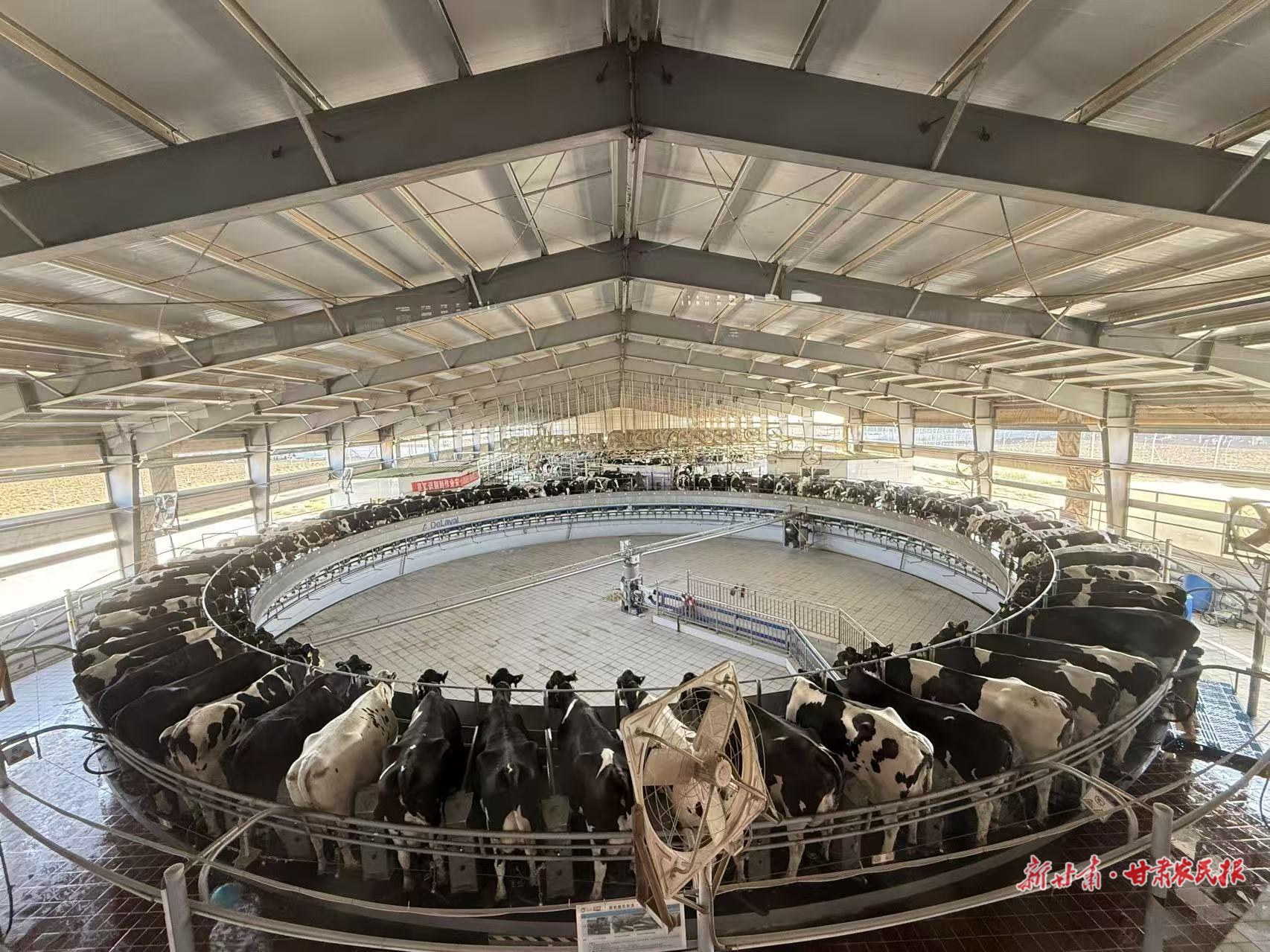 走進高臺縣合黎鎮的甘肅燕塘傳祁牧業有限公司,現代化氣息撲面而來。黑白相間的荷斯坦奶牛在標準化圈舍內悠閑踱步,全自動轉盤式擠奶機正高效運轉。