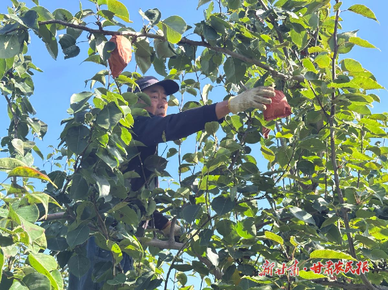 金秋時(shí)節(jié),涼州區(qū)西營鎮(zhèn)前興村的皇冠梨種植基地里一派繁忙景象。樹枝上掛滿了套著防護(hù)袋的皇冠梨,村民們挎著竹籃穿梭林間,小心翼翼地采摘、裝筐,空氣中都飄著清甜的果香。如今,特色梨產(chǎn)業(yè)已成為當(dāng)?shù)厝罕娫鍪罩赂弧⒋寮w經(jīng)濟(jì)壯大的“黃金產(chǎn)業(yè)”。