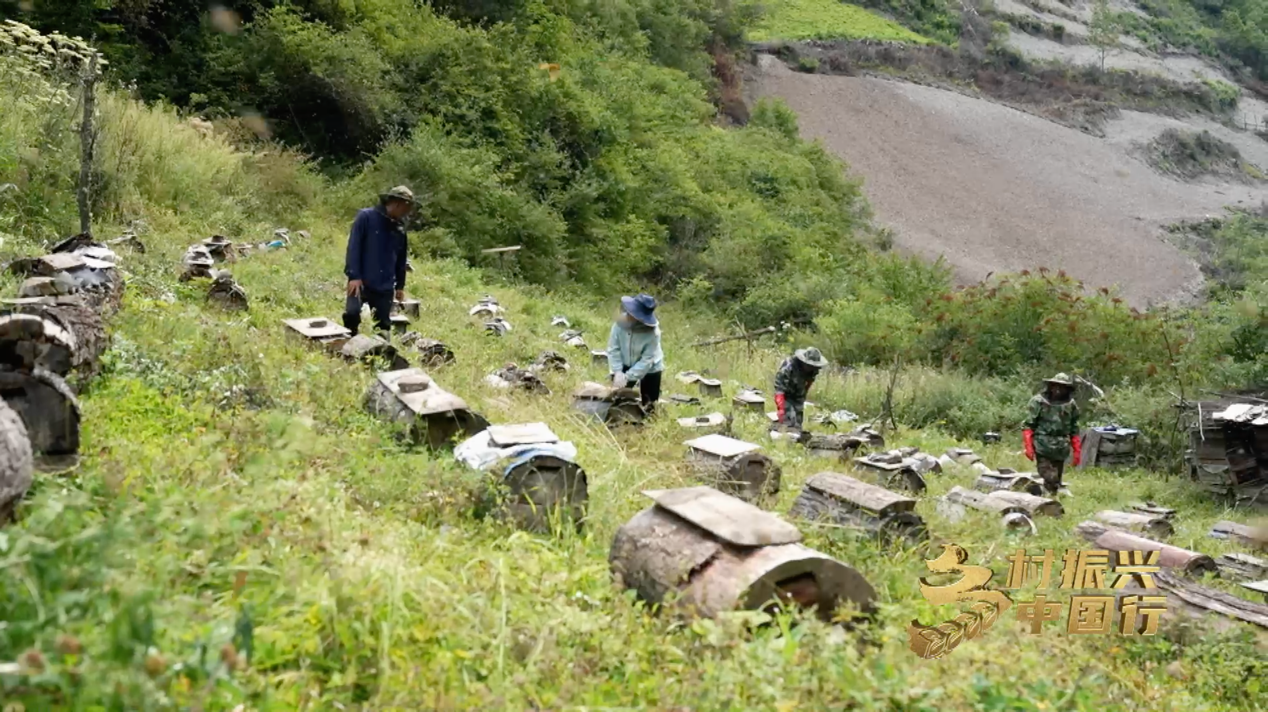 在舟曲縣臥歐諾村,勤勞的中華蜜蜂是村民的致富好幫手。村民以空心木樁為蜂安家,蜜蜂則用甘甜的蜂蜜回報村民。