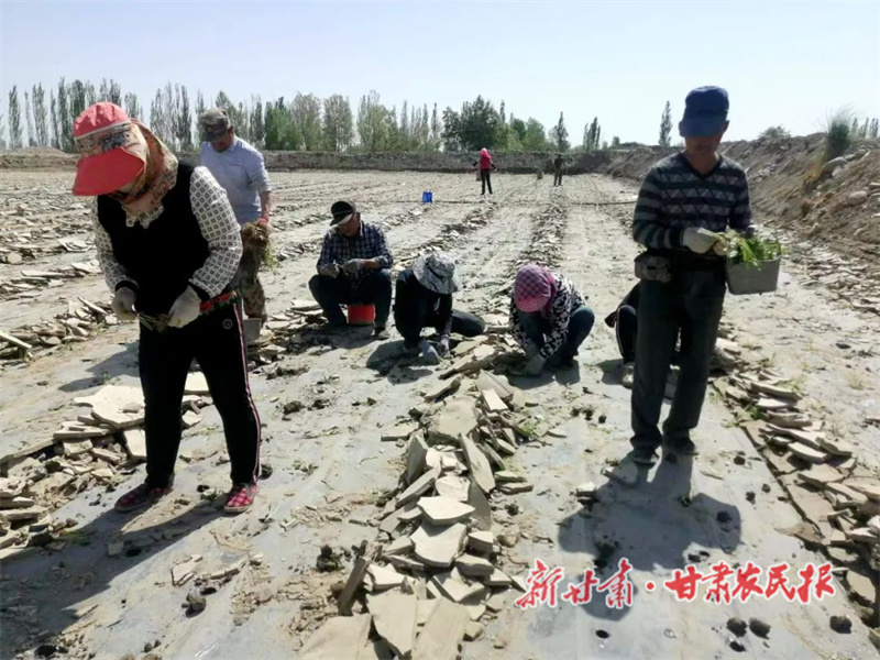 甘肅農民網訊 初夏時節,走進肅州區金佛寺鎮上三截村千畝花卉示范基地,一枝枝虞美人長勢喜人,一片片格桑花整齊秀麗,到處一派生機勃勃景象。田地里,20多位村民正緊鑼密鼓地栽種二月蘭、松果菊、剪秋蘿等特色花草,剛從育苗基地運來的苗木青翠欲滴,大家齊心協力運苗、栽種,一片繁忙景象。