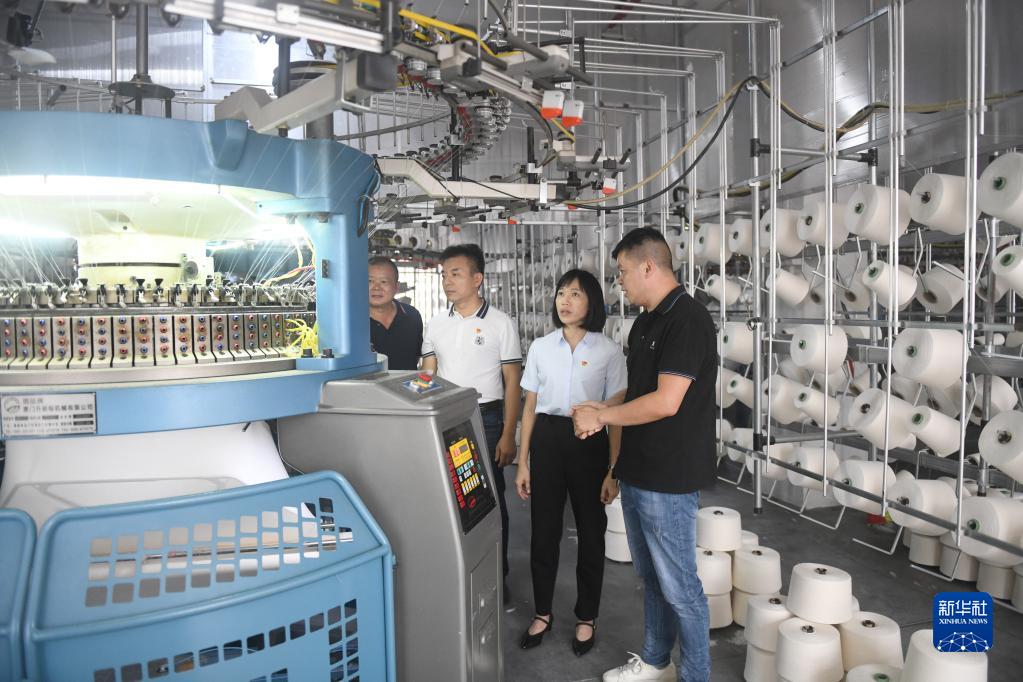 陸秀興(右二)在佛山市禪城區張槎街道古灶村內一處產業園了解企業投資生產情況(2022年9月7日攝)。新華社記者 盧漢欣 攝